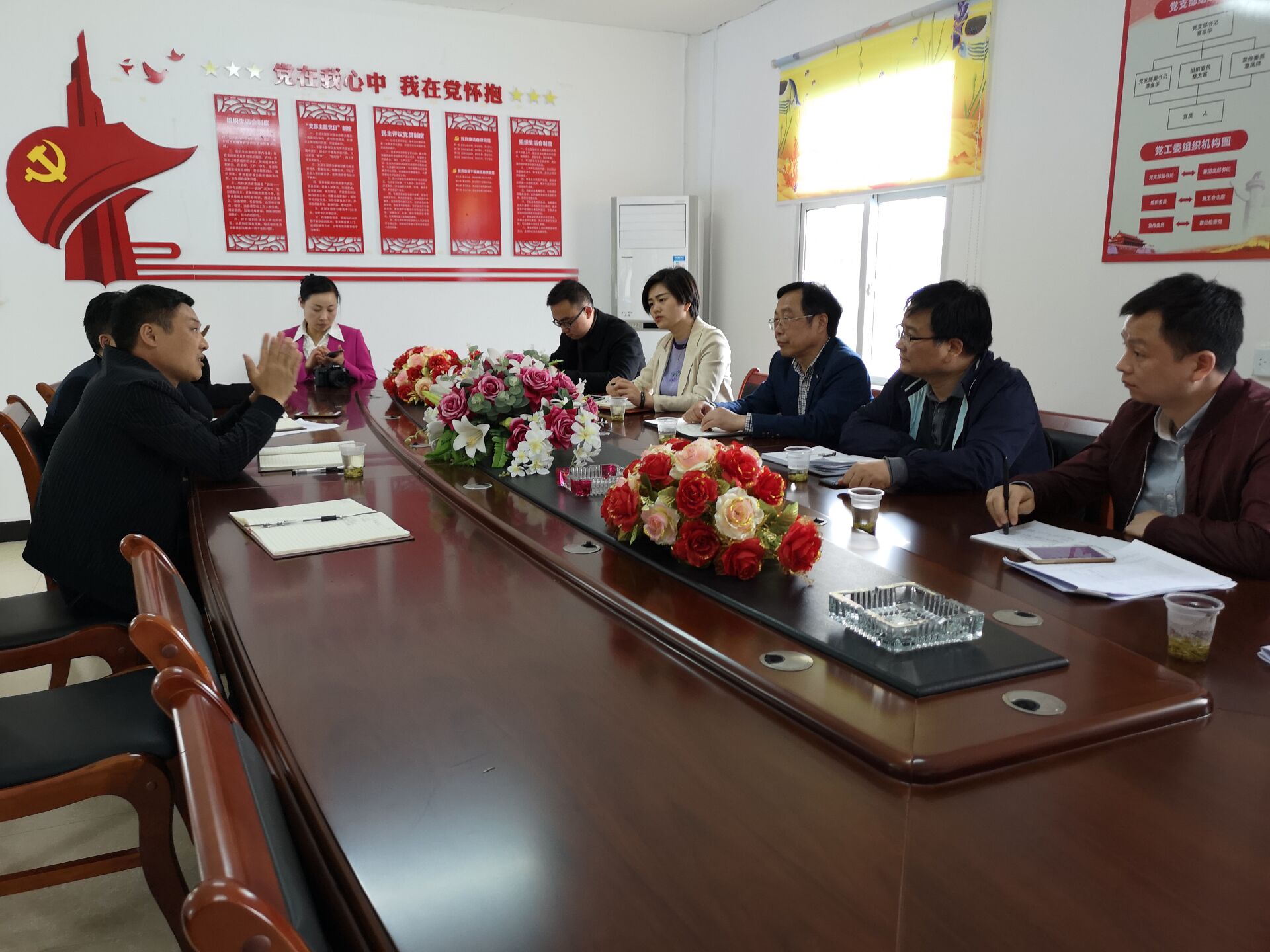 (各位领导在会议室详细听取我公司发展情况的介绍)